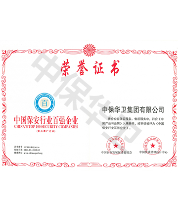 • 中国保安行业百强企业荣誉证书牌匾