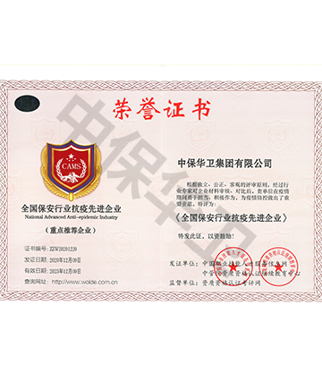 • 全国保安行业抗疫先进企业荣誉证书
