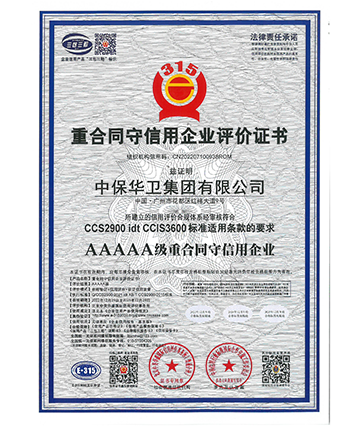 • 5A级重合同守信用企业认证证书