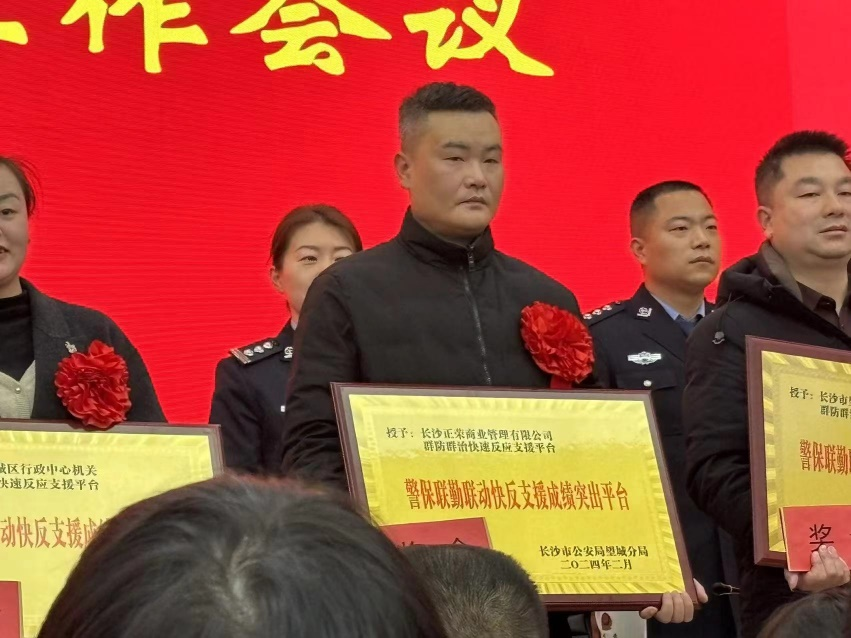 2024年3月1日上午,中保华卫集团-长沙财富中心安保服务项目,被长沙市公安局望城分局授予”警保联勤联动快反支援成绩突出平台”。